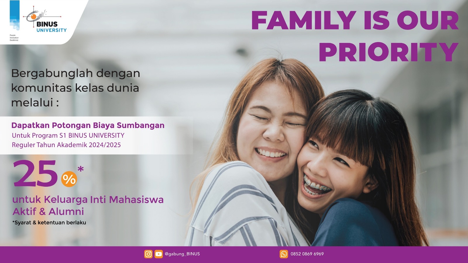 - Pengumuman beasiswa akan dikonfirmasi oleh Admisi BINUS UNIVERSITY